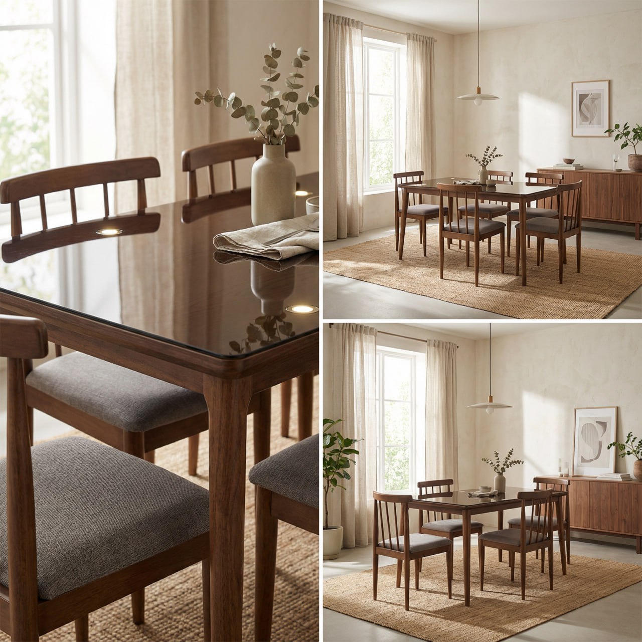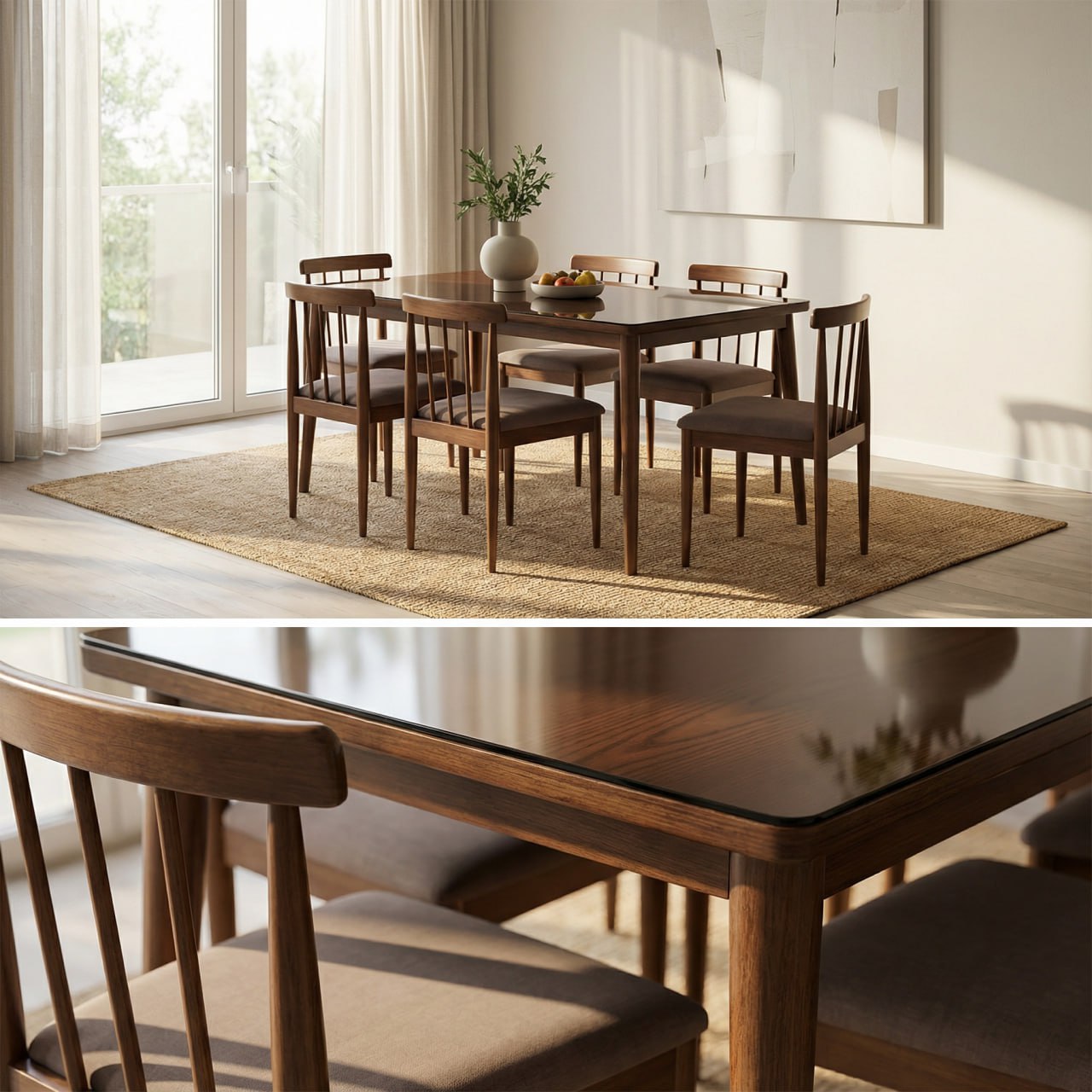 <p>محصولات تخصصی دِزاین</p><p>غذاخوری خوری ۶ نفره مدل السا به همراه ۶ عدد صندلی مدل آرشه</p>